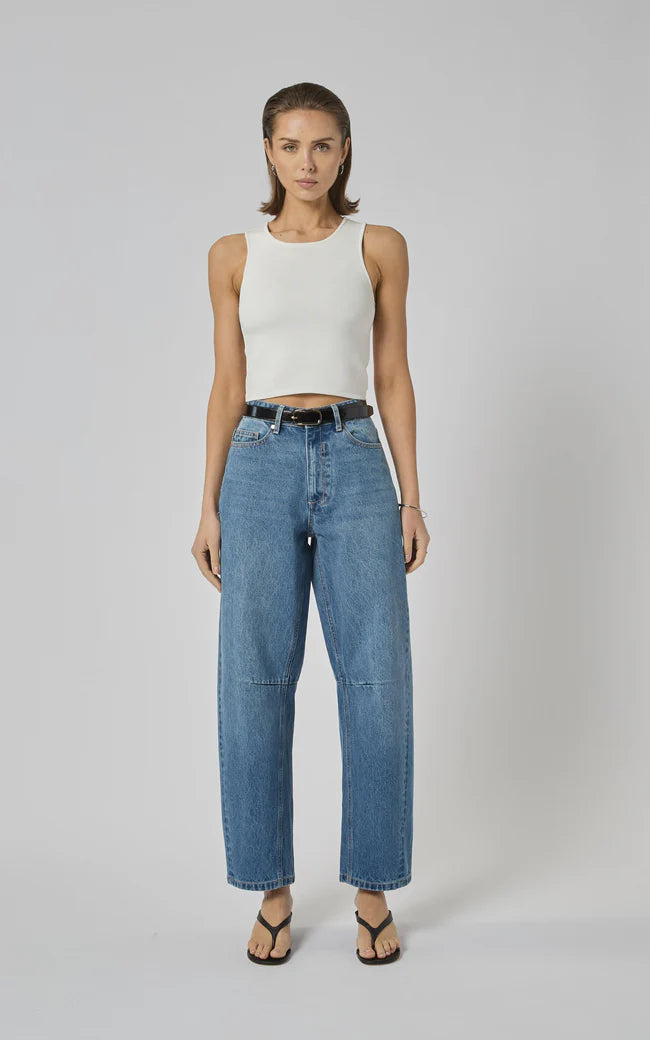 Introducing the ZELLA Barrel Jeans - Rodeo Blue from DRICOPER. These High -Rise wide leg denim jeans crafted from sturdy 100% Cotton Denim bring an easy, modern polish to your everyday wardrobe.