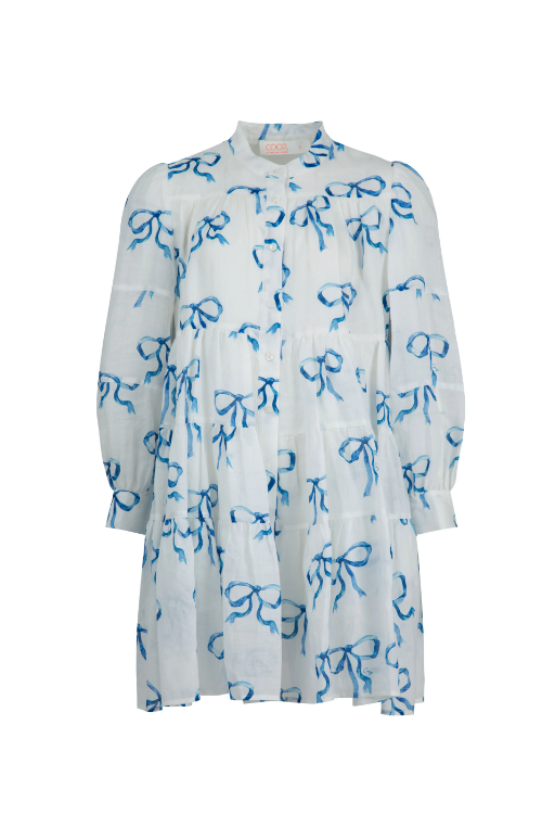 Our signature tiered silhouette reimagined this season in a shorter length, the ‘Tier-Ific’ dress is a charming addition to add to your spring dress rotation. Crafted in the gauzy ‘Cupid’s Bow’ ramie, this bow printed dress sports gathered tiers with a paneled sleeve for maximum volume and a button through front.