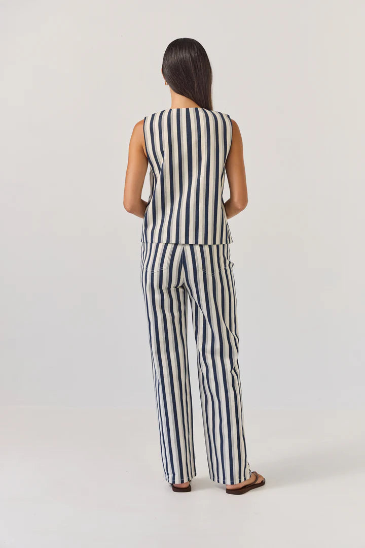 Introducing the Oakley Pants from Tuesday Label. These striped pants offer a refined, relaxed silhouette perfect for warm-weather dressing.
