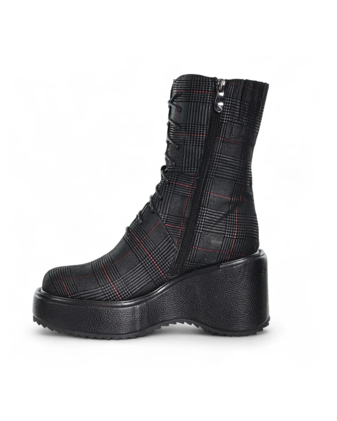 Calling all Tokyo boot lovers—introducing Cira, the latest evolution of this iconic style. This striking above-ankle design features an 11-hole lace-up front paired with a practical inside zipper for easy wear and a sleek, tailored fit. Cira showcases a commanding full leather-wrapped platform that exudes bold, unapologetic style. A true statement-maker, these boots elevate any ensemble—perfectly paired with wide-leg ankle grazers, pleated skirts, or dynamic asymmetric hemlines.